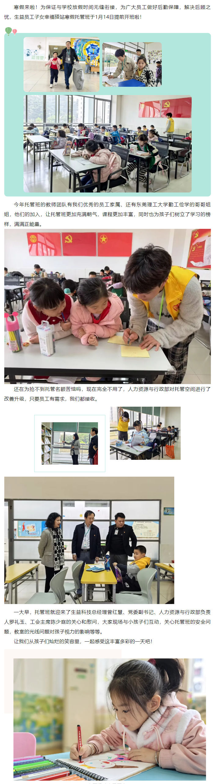 生益员工子女幸福驿站2025寒假托管班开班