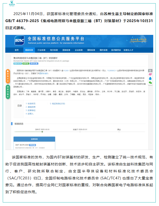 祝贺苏州生益主导制定一项国家标准正式颁布