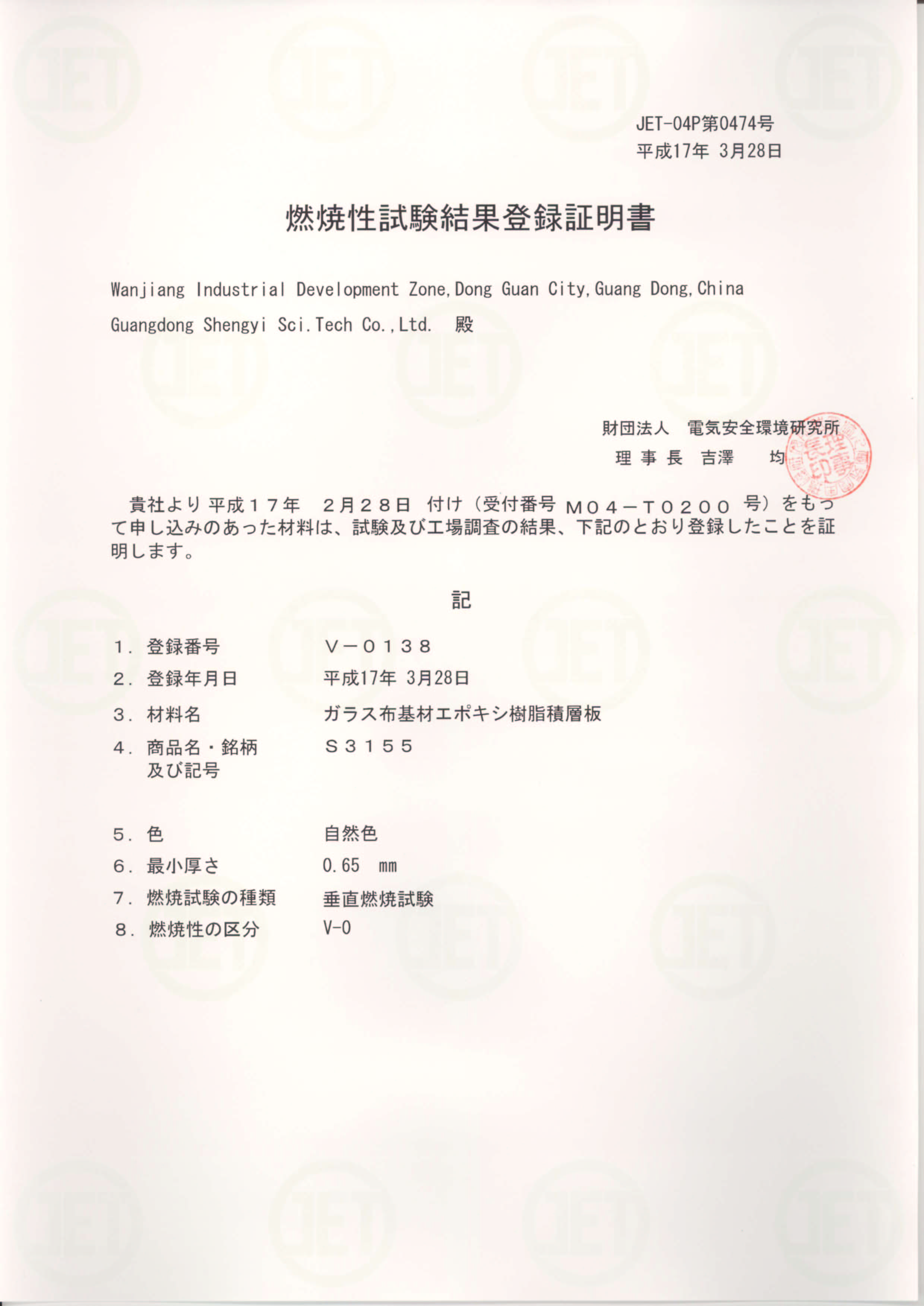 S3155 JET Certificate