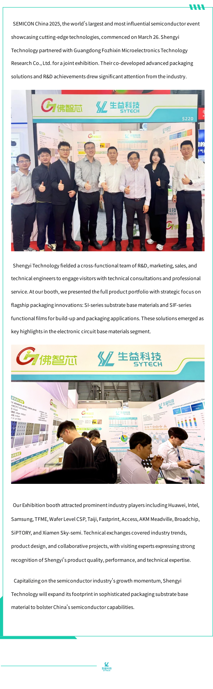 Shengyi Technology Showcases Advanced Packaging Solutions at SEMICON China 2025