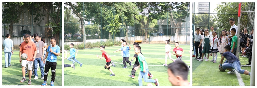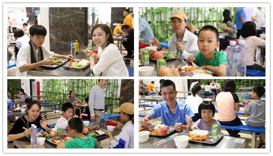 在员工生活区举行的亲子足球活动,让同学和家长们欢乐互动起来。在公司餐厅中共聚午餐,让小家庭感受到了生益大家庭的氛围。